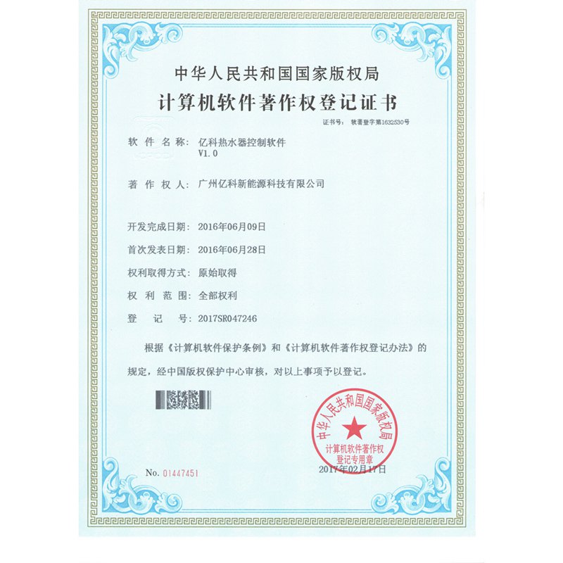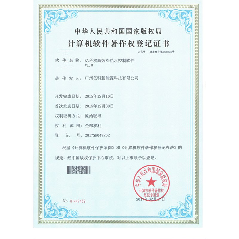 億科產(chǎn)品均通過(guò)國(guó)家3C認(rèn)證,并擁有十幾項(xiàng)外觀(guān)、實(shí)用新型專(zhuān)利技術(shù),以及控制程序軟件著作權(quán)。與廣東工業(yè)大學(xué)建立產(chǎn)學(xué)研合作單位,是廣州市放心消費(fèi)共建單位,并于2017年被評(píng)為“廣東省高新技術(shù)企業(yè)”。