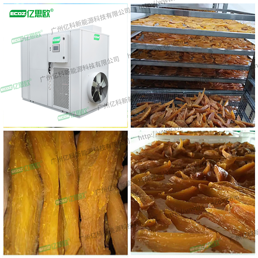 億思?xì)WECOZ空氣能熱泵烘干機(jī)是目前商家選擇的紅薯烘干方式,接近自然干燥,紅薯干表面水分的蒸發(fā)速度與內(nèi)部水分向表面遷移速度比較接近,烘干后的紅薯干色澤好、外形好、產(chǎn)品等級(jí)高。