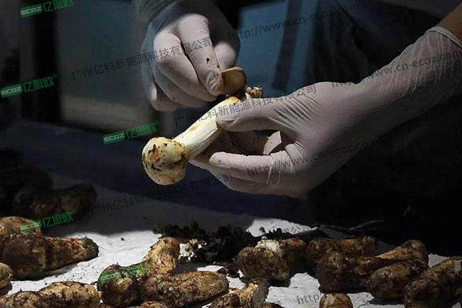 松茸烘干質(zhì)量的檢驗:烘干到16-18小時,可以打開烘干房的門,檢查松茸的干燥度是否合格,檢查時,用手指壓按菌蓋與菌柄交界處,若只是呈現(xiàn)出痕跡,說明干燥度合格了,若手上感覺發(fā)軟,菌褶也有軟的現(xiàn)象,說明水份未能完全排出,需要繼續(xù)烘干,合格的松茸干品的表現(xiàn)是有特殊的菌香味,菌褶為黃色,菌褶直立、完整。菌體含水在13%,松茸保持原有的形狀,菌蓋圓平,保持自然色澤。