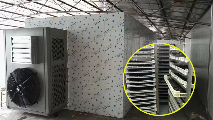 將煮好的海參擺放在物料盤上,將擺好海參的物料盤放置入億思?xì)WECOZ空氣能熱泵海參烘干機內(nèi),通過智能控制系統(tǒng)設(shè)置烘干溫度、濕度和時間參數(shù),開始干燥。